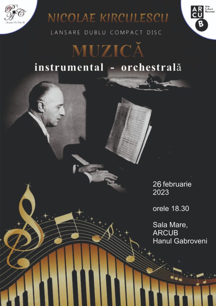 În data de 26 februarie 2023, la Sala Mare a ARCUB – Centrul Cultural al Municipiului București a avut loc lansarea în premieră a primului dublu compact disc cu muzică instrumental – orchestrală a celebrului compozitor NICOLAE KIRCULESCU, material discografic realizat de doamna Marieta Bratu Palaghia, văduva compozitorului Nicolae Kirculescu, cu sprijinul Casei de Discuri ”Electrecord”.